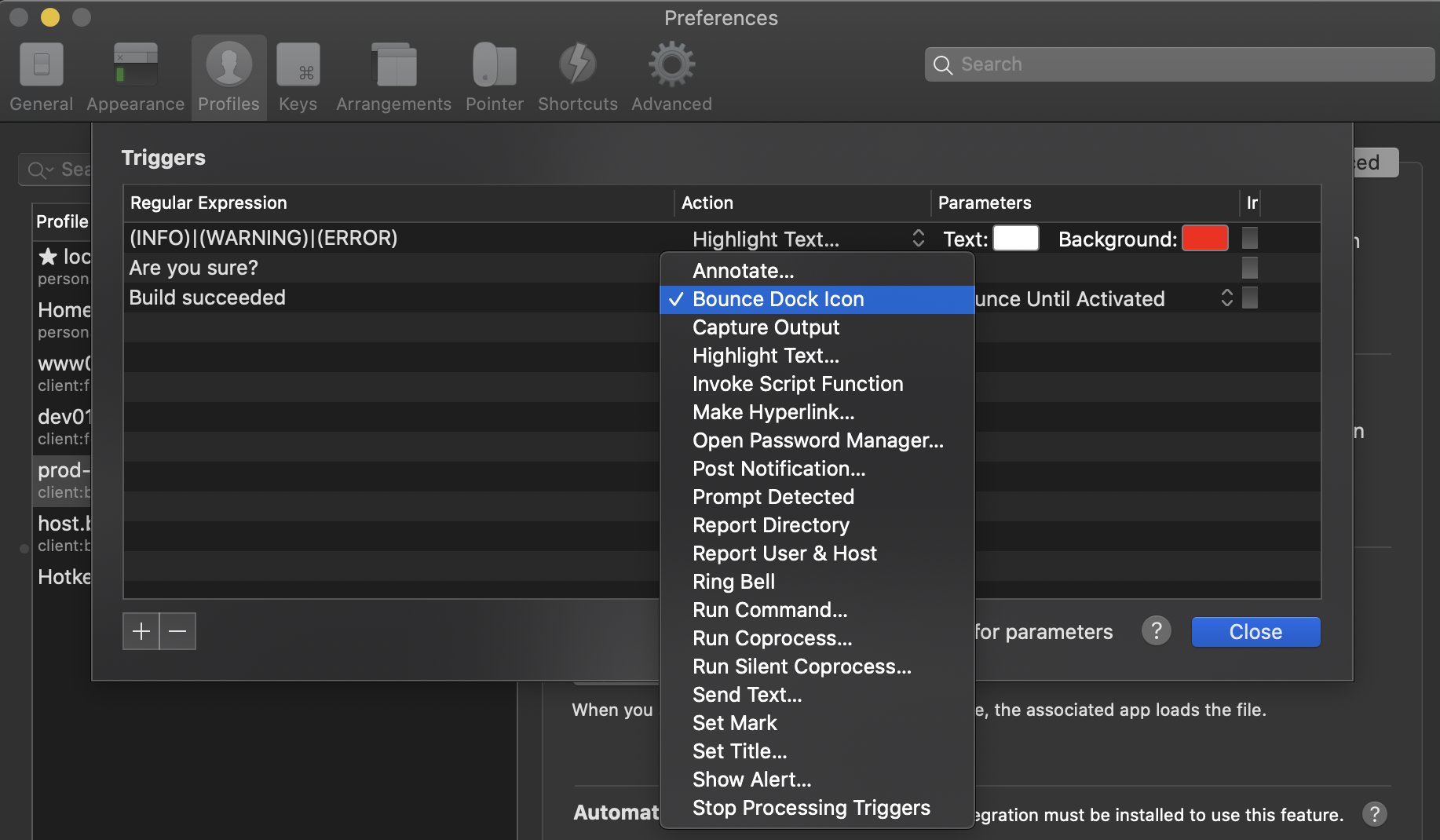 Do you need to store separate configurations for many different hosts? iTerm2 provides a taggable and searchable profiles database so you can easily find the profile you're looking for.